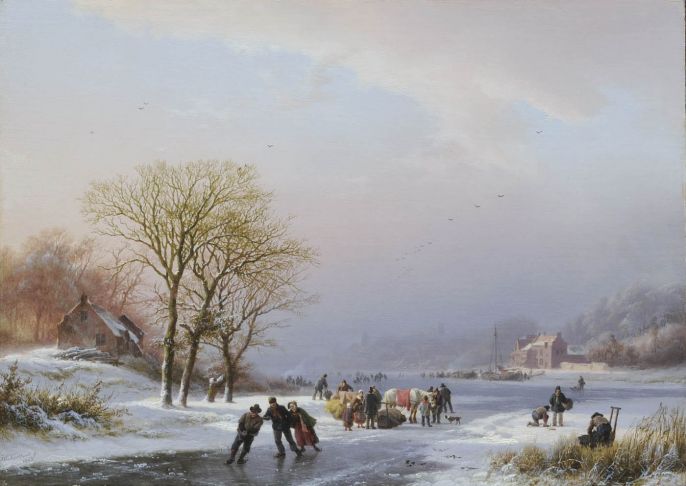 Das Motiv der Winterlandschaft mit Schlittschuhläufern hat in der niederländischen Malerei Tradition seit dem 16. Jahrhundert (Pieter Brueghel). Hendrick Avercamp spezialisierte sich zu Beginn des 17. Jahrhunderts als der erste niederländische Maler ganz auf Winterlandschaften. Das 19. Jahrhundert greift diese Tradition wieder auf.