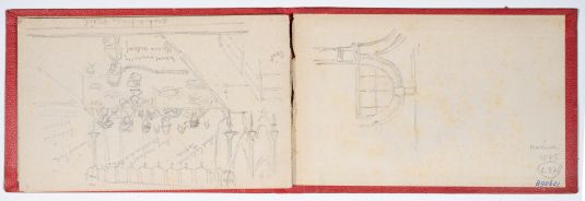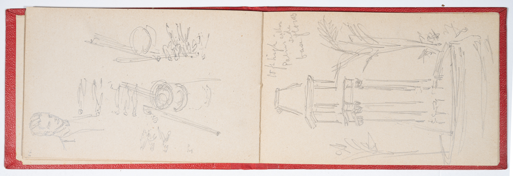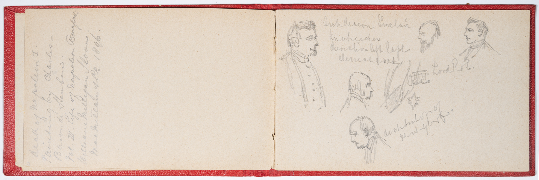 Motive: Architektur, Figuren, Porträtköpfe, Notizen in englischer Sprache