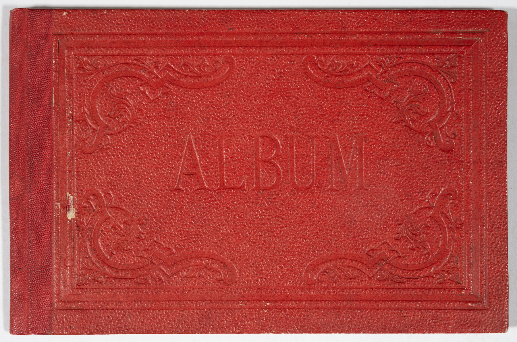 Einband: rotes Leder, in Prägedruck „Album“, roter Leinenrücken