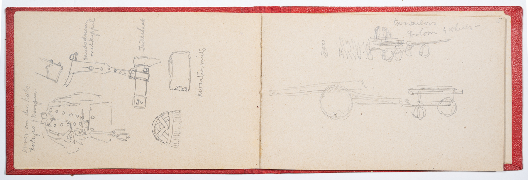 Hermanus Willem Koekkoek macht die Welt des Militärs zu seinem künstlerischen Thema. In seiner Zeit in London ist er als Zeichner am königlichen Hof zugelassen. Das Skizzenbuch stammt aus dem Jahr 1914, der Londoner Zeit. Den Motiven nach sind es vorbereitende Zeichnungen für die Beiträge in den „Illustrated London News“.