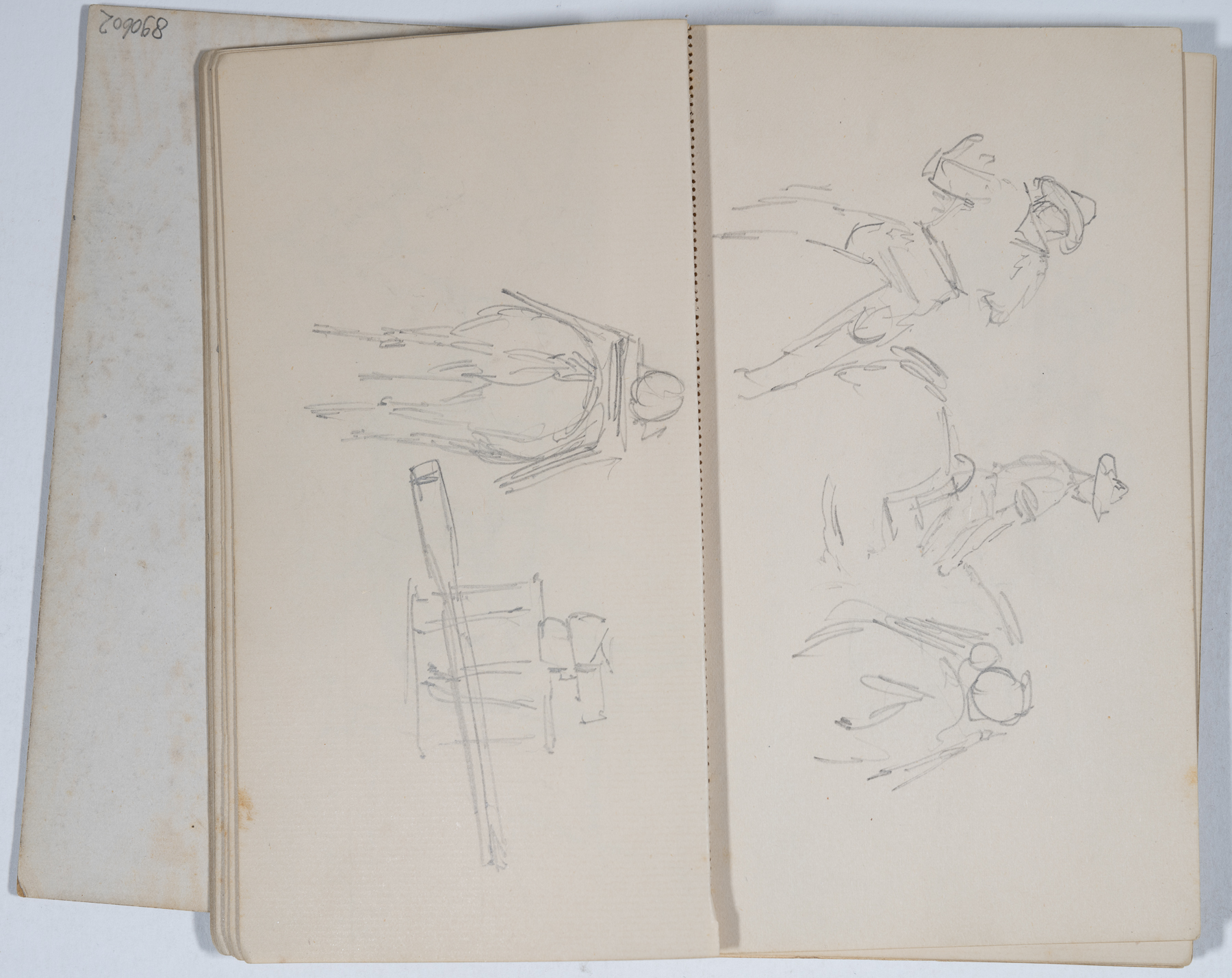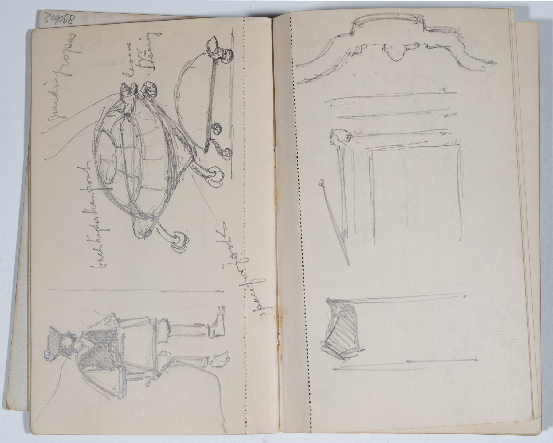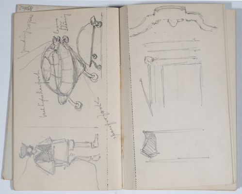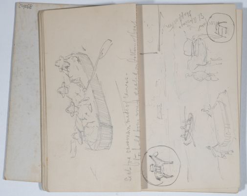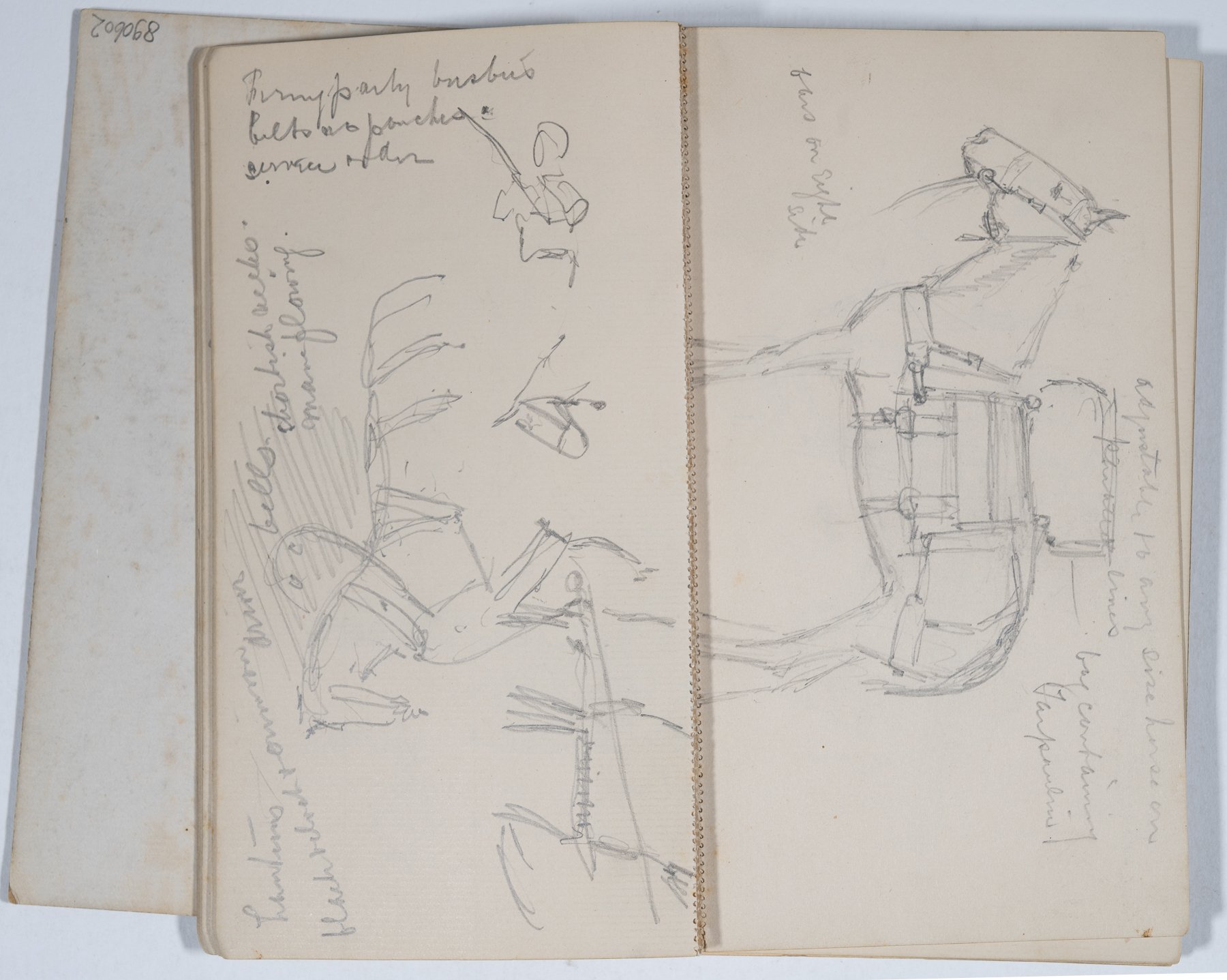 Motive: Architektur (London St. Paul’s Cathedral), Figuren, Soldaten, Pferde, Heerlager, Hafenszenen, orientalische Skizzen, viele handschriftliche Notizen in englischer Sprache