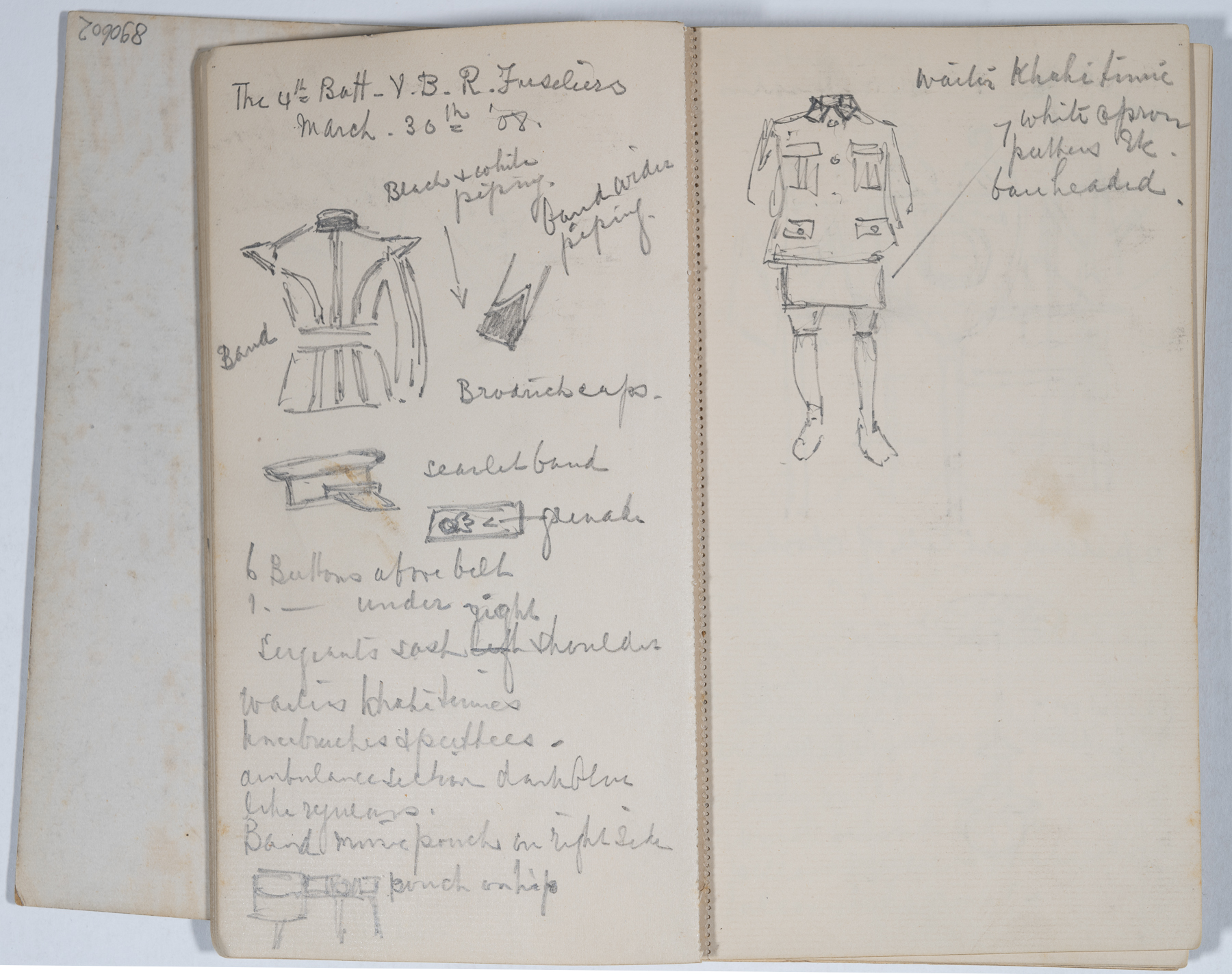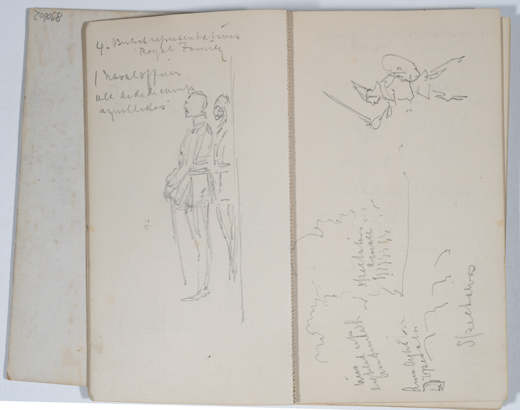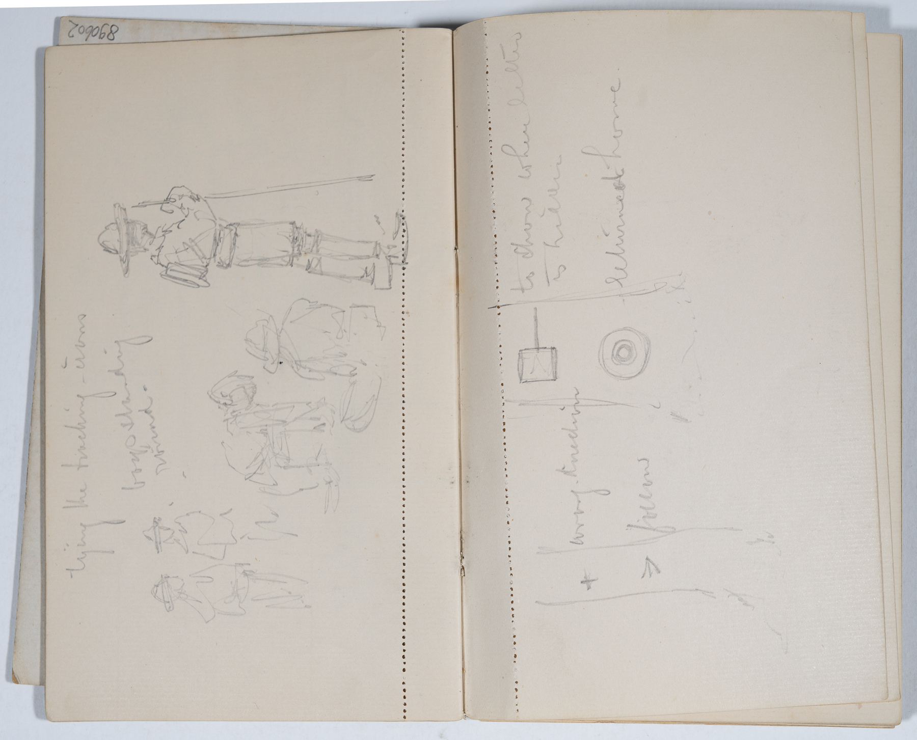 Hermanus Willem Koekkoek macht die Welt des Militärs zu seinem künstlerischen Thema. In seiner Zeit in London ist er als Zeichner am königlichen Hof zugelassen. Das Skizzenbuch stammt aus dem Jahr 1914, der Londoner Zeit. Den Motiven nach sind es vorbereitende Zeichnungen für die Beiträge in den „Illustrated London News“.