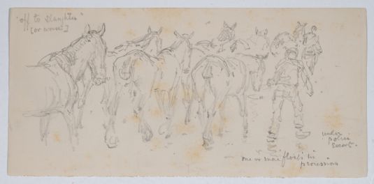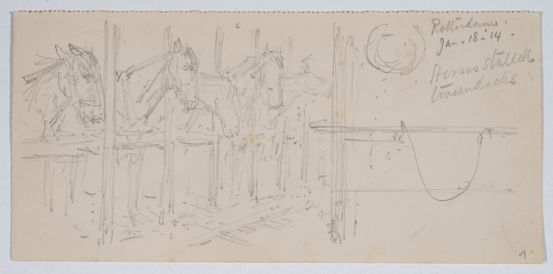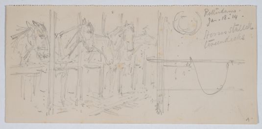 Hermanus Willem Koekkoek macht die Welt des Militärs zu seinem künstlerischen Thema. In seiner Zeit in London ist er als Zeichner am königlichen Hof zugelassen. Das Skizzenbuch stammt aus dem Jahr 1914, der Londoner Zeit. Den Motiven nach sind es vorbereitende Zeichnungen für die Beiträge in den „Illustrated London News“.