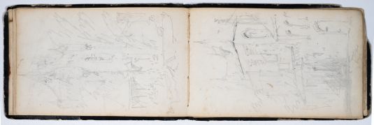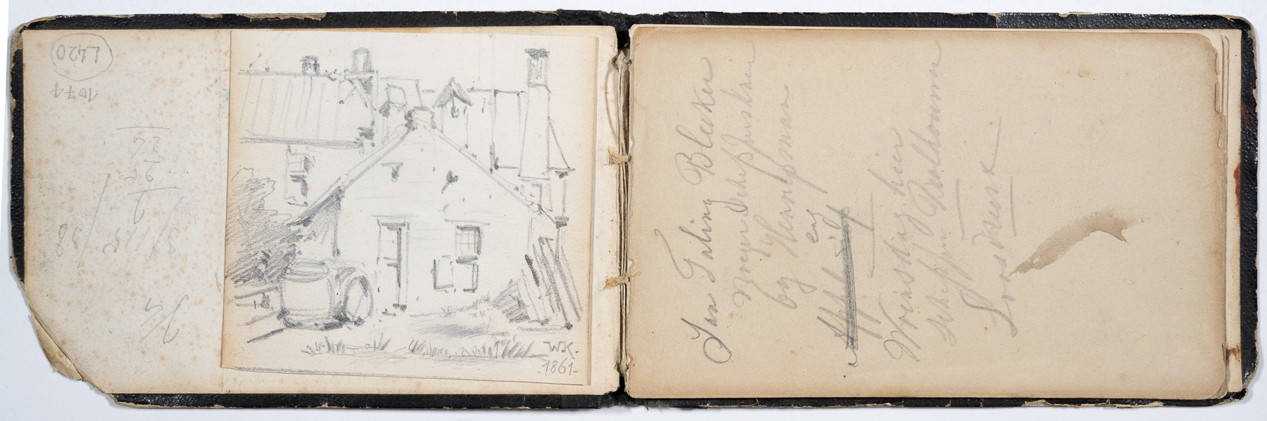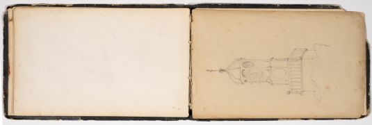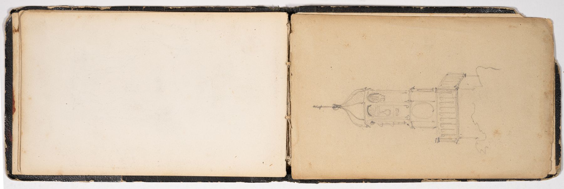 Skizzenbuch mit 9 Blättern, ein eingelegtes loses Blatt