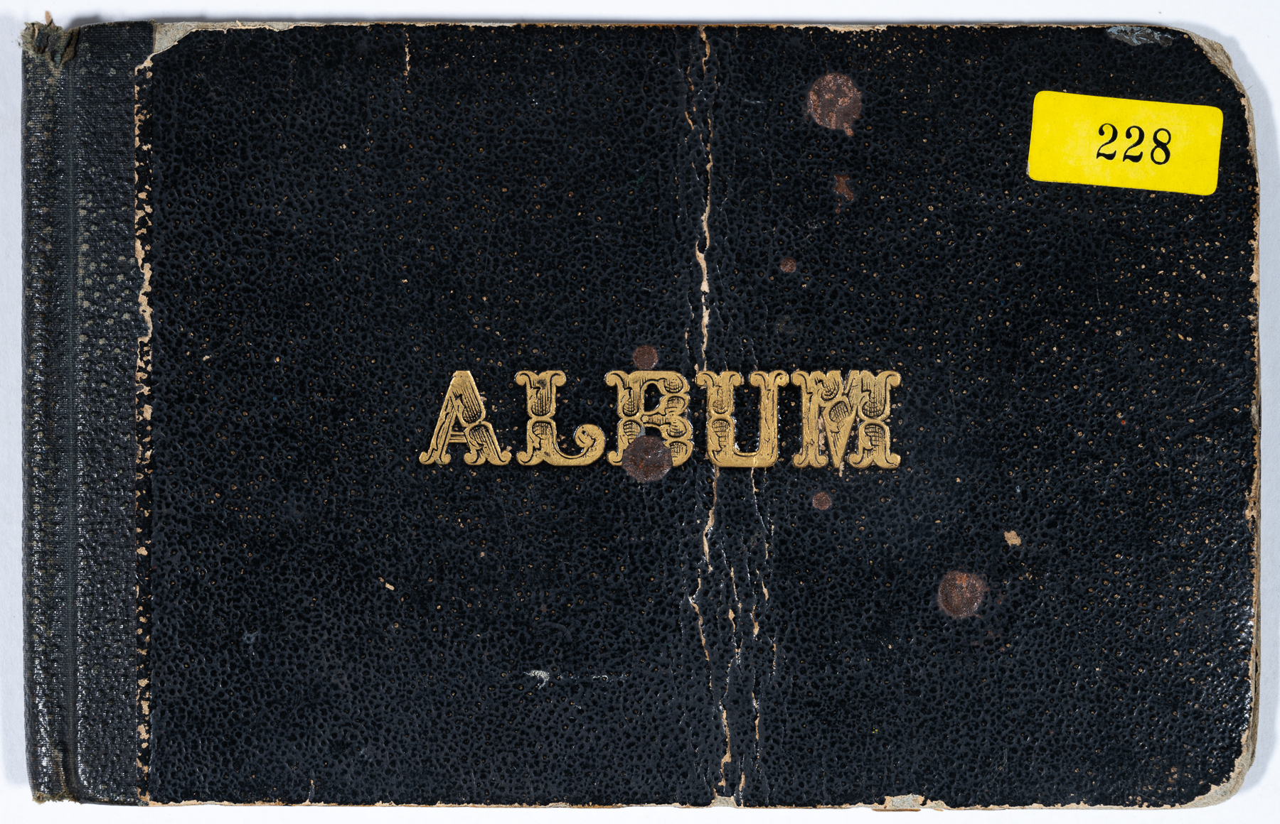 Einband: schwarzes Leder mit Prägedruck „Album“ in Gold