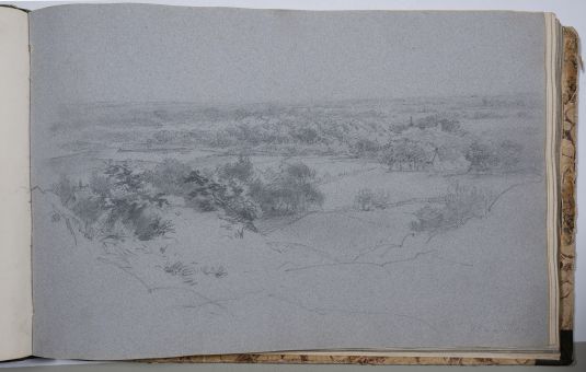 Das Werk des Landschaftsmalers Cornelis Lieste ist von B.C. Koekkoek beeinflusst, wenn auch ein direkter Kontakt der beiden Maler nicht dokumentiert ist. 1840 unternimmt er Studienreisen nach Belgien und Deutschland. Dabei besucht er höchstwahrscheinlich auch B.C. Koekkoek. Aus dieser Zeit stammt das vorliegende Skizzenbuch. Einige weitere Zeichnungen in der Museumssammlung stammen von einem Reisebegleiter und zeigen fast identische Motive. Letztere sind 1841 datiert und geben damit weiteren Rückschluss auf die Entstehungszeit des Skizzenbuches.