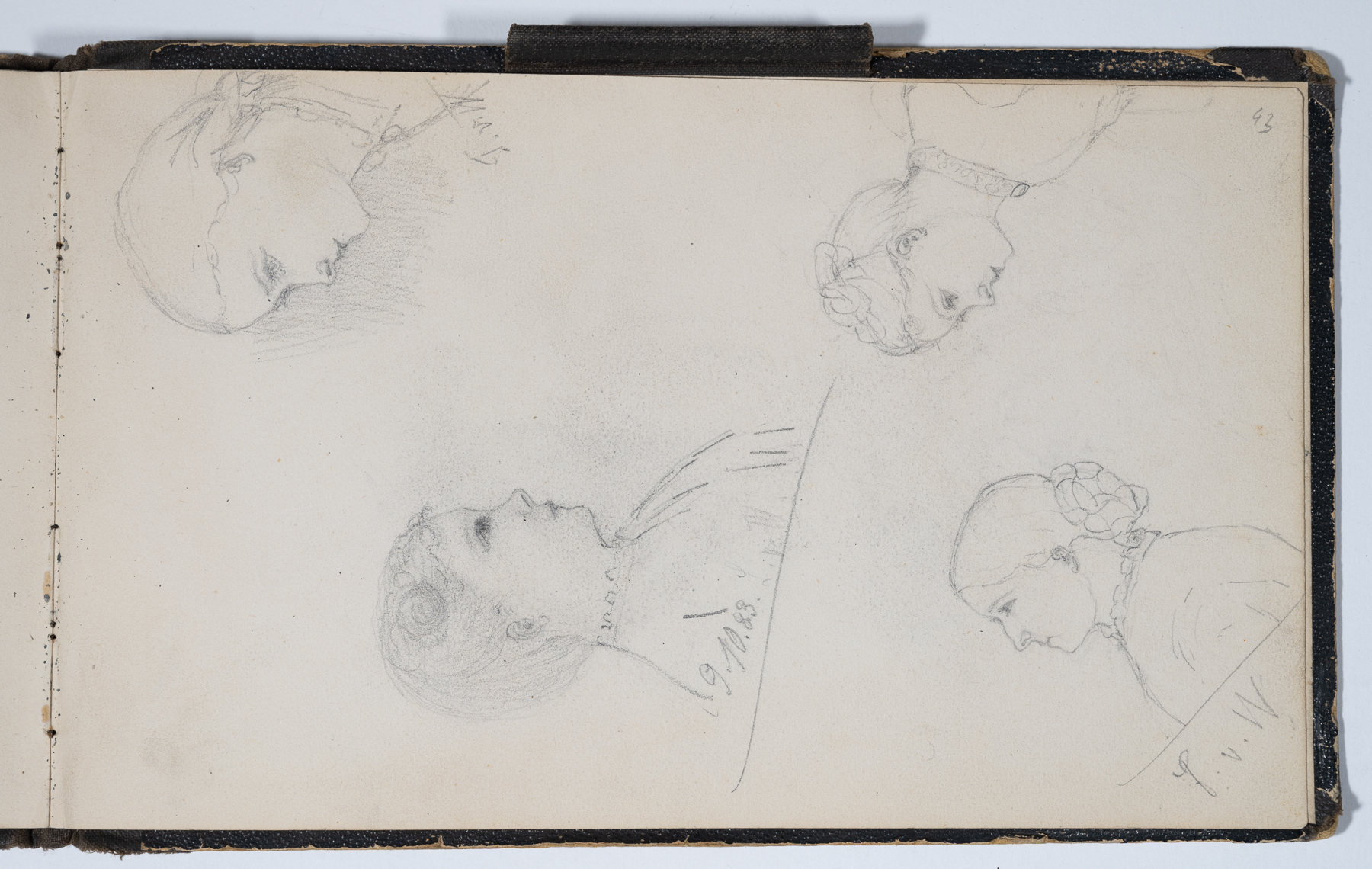 Motive: Landschaftsskizzen aus dem Rheintal und vom Niederrhein, Porträtstudien