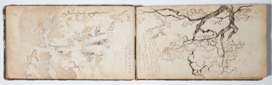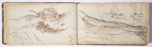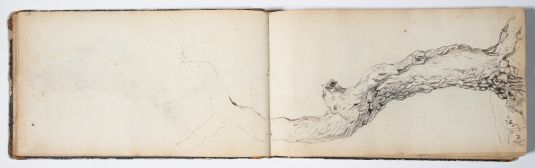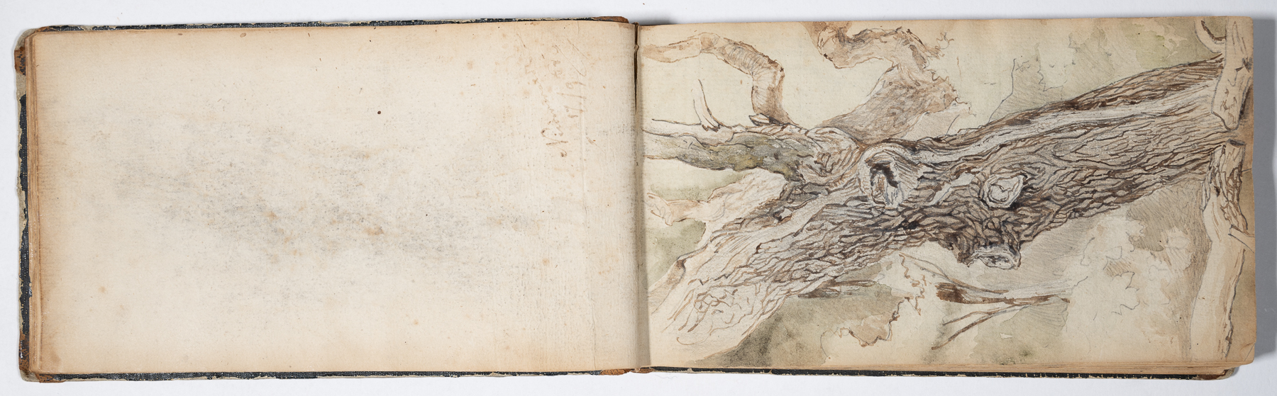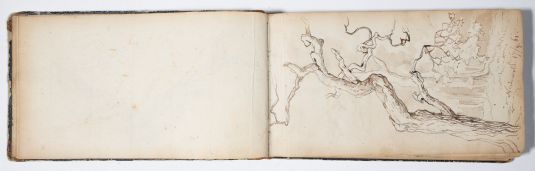 Umfangreiches Skizzenbuch mit 100 Blatt, alle gefüllt mit Skizzen, Tagebucheintragungen und Notizen, im hinteren Teil ein längerer Text