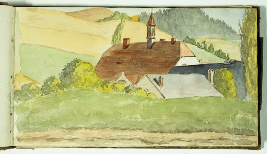 Skizzen mit Bleistift, Kreide, teilweise farbig aquarelliert
