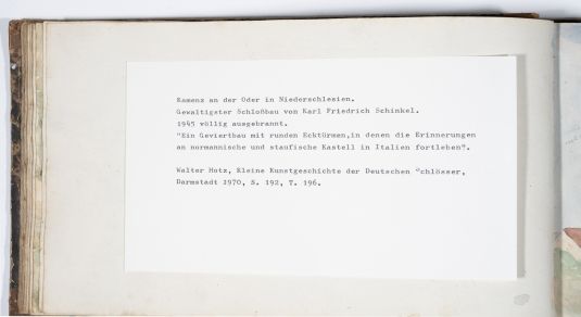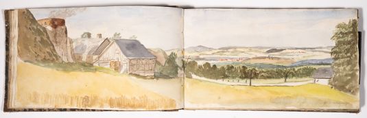 Motive: Figurenstudien, topografische Studien Oberlausitz und Niederschlesien, Rheinland (Burgen), Figurenstudien, Details von Möbeln und Gerätschaften, Pferdegeschirr und Wagen, einige Kopien nach niederländischen Kunstwerken