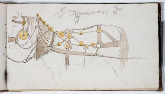 Motive: Figurenstudien, topografische Studien Oberlausitz und Niederschlesien, Rheinland (Burgen), Figurenstudien, Details von Möbeln und Gerätschaften, Pferdegeschirr und Wagen, einige Kopien nach niederländischen Kunstwerken