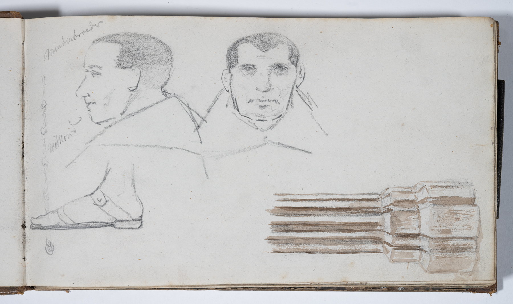Skizzen mit Bleistift, Kreide, teilweise farbig aquarelliert