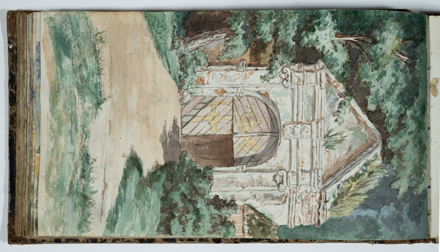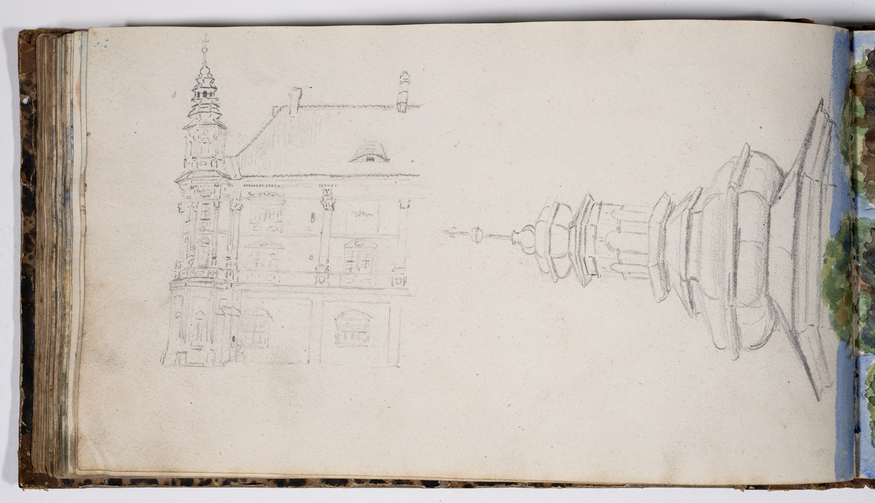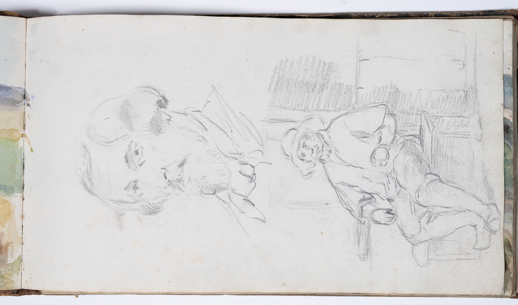 Skizzen mit Bleistift, Kreide, teilweise farbig aquarelliert