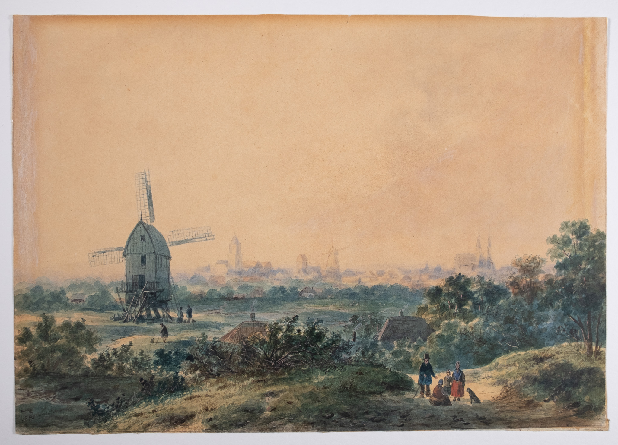 Eine Panoramaansicht (nach dem Bau der Kaserne 1864) befindet sich in der Sammlung des B.C. Koekkoek-Hauses. ebenfalls dazu ein vorbereitendes Aquarell. Es zeigt im Vordergrund die Heideberger Mühle außerhalb der Stadtmauern. in der Stadtsilhouette von links nach rechts: Schwanenburg, Kuhhirtenturm, Teurling’sche Mühle auf der Stadtmauer, Stiftskirche. Der Standpunkt des Künstlers befindet sich am südlichen Rand des Tiergartenwaldes (Montebello). In seinem späteren Gemälde hat Ahrendts auf die dominante Mühle im Vordergrund verzichtet.