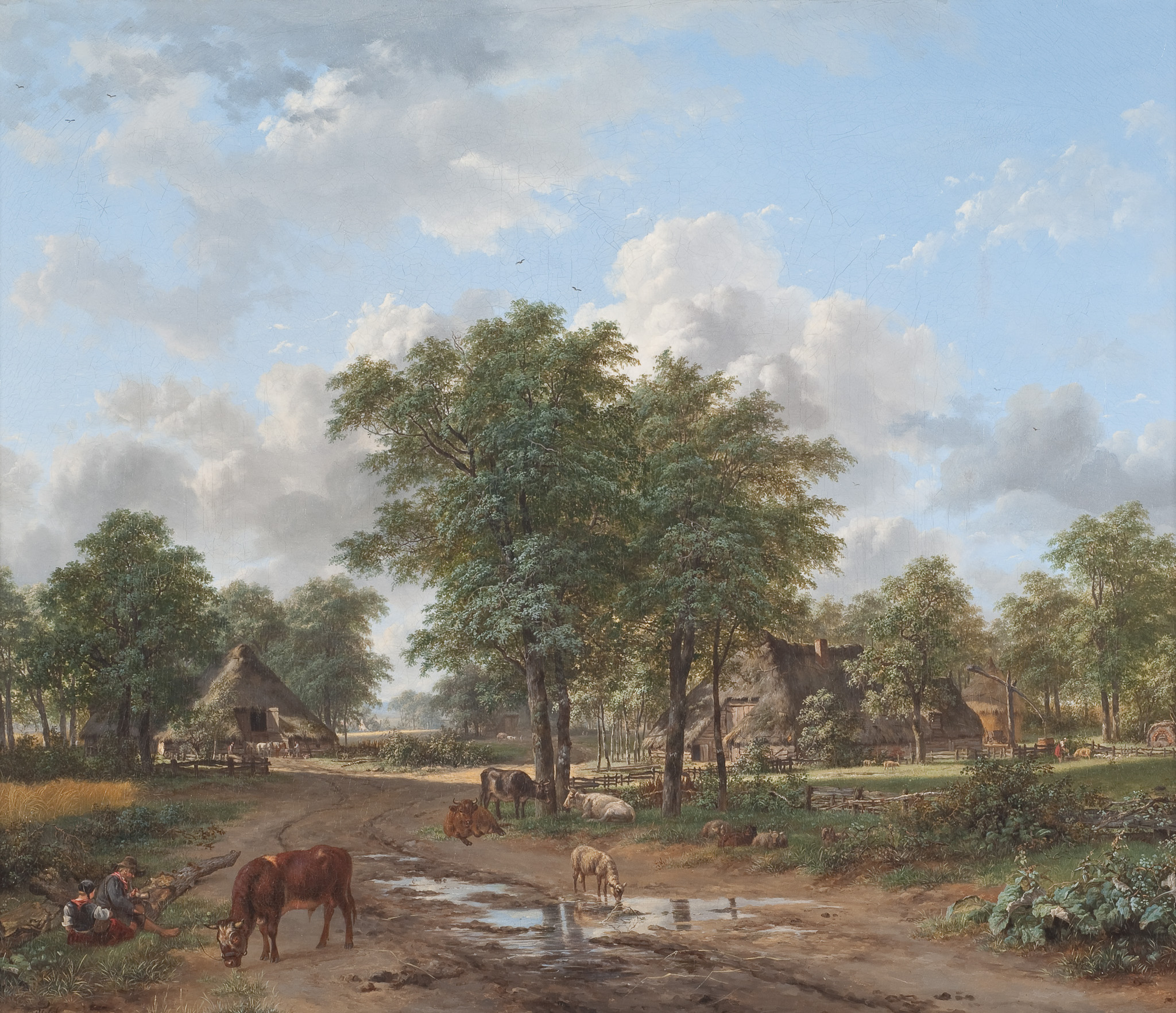 Van Os ist mit B.C. Koekkoek seit dessen Aufenthalt in der Malerkolonie Hilversum1826 bekannt. Er ist zunächst Schüler seines Vaters Jan van Os, Maler von Blumenstilleben und Seelandschaften. Anfangs als Zeichenlehrer in Amsterdam, zieht er 1810 nach 's-Graveland und Hilversum. Zusammen mit Jan van Ravenswaay (1789-1869) gründet er 1824 hier die Zeichenakademie „Tot Nut van `t Algemeen“ (zum Nutzen der Allgemeinheit). Unter anderem gibt er dort auch J.T. Abels [Link Abels] Unterricht. Dieser wird sein Schwiegersohn, bei dem er seit 1830 wohnt. Van Os ist berühmt als Maler von Landschaften mit Vieh nach Art niederländischer Maler des 17. Jahrhunderts. Dabei legt er besonderen Wert auf die genaue Darstellung von Vieh nach dem Vorbild der berühmten Radierungen aus den „Beestenboekjes“ von Nicolaes Berghem. Er staffiert Gemälde seiner Malerkollegen, unter anderen von B. C. Koekkoek und Andreas Schelfhout . Van Os hat viele Schüler unter anderen Jan van Ravenswaay, Albert Verhoesen und Wouter Verschuur.