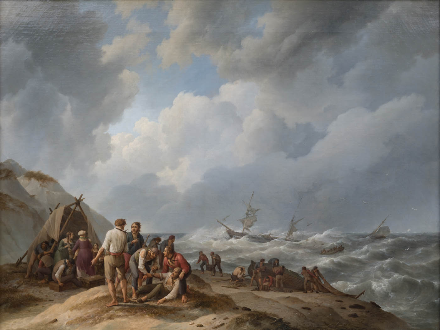 Johannes Hermanus Koekkoek ist einer der besten maritimen Maler seiner Zeit. Er zeichnet Stadtansichten und historische Ereignisse, die teilweise als Drucke verlegt werden. Er gibt Zeichenunterricht. Seine qualitätvollen Aquarelle sind heute selten. Sein Werk verkauft er vor allem in den Niederlanden und in England. Seine Malerei ist der Tradition des niederländischen 17. Jahrhunderts verbunden. Er zeigt in seinen Gemälden die Naturgewalt der Zuiderzee (heute Ijsselmeer), die erst 1932 eingedeicht wird, der aber im 19. Jahrhundert die Menschen noch ausgeliefert sind.