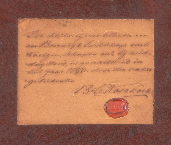 Zeit seines Lebens hält B.C. Koekkoek seine Ölskizzen und -studien unter Verschluss: Er versteht sie nicht als eigenständige Kunstwerke. Nur wenige dieser Werke sind im Katalog der Nachlassversteigerung von 1862 gelistet. Einige sind durch Nachkommen innerhalb der Familie weitergereicht worden und in das B.C. Koekkoek-Haus gekommen.