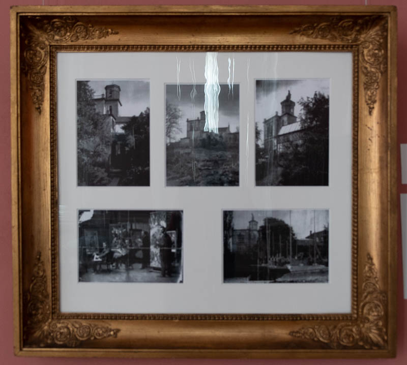 Ensemble aus vier identischen Hohlkehl-Rahmen mit originalen Glasscheiben; in den Zwickeln florales Ornament (Palmetten, Blumen), innere Ornamentleiste um den Bildausschnittrand mit Perldekor.