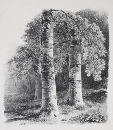 Landschaftsstudien / landschapstudies (Probe); Birkenstämme; 59. Blatt von 59 Lithographien.