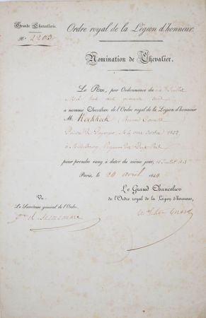 Ernennung zum "Chevalier des "Ordre Royale de la Légion d'Honneur" (vgl. 1125, 1126, 1128)