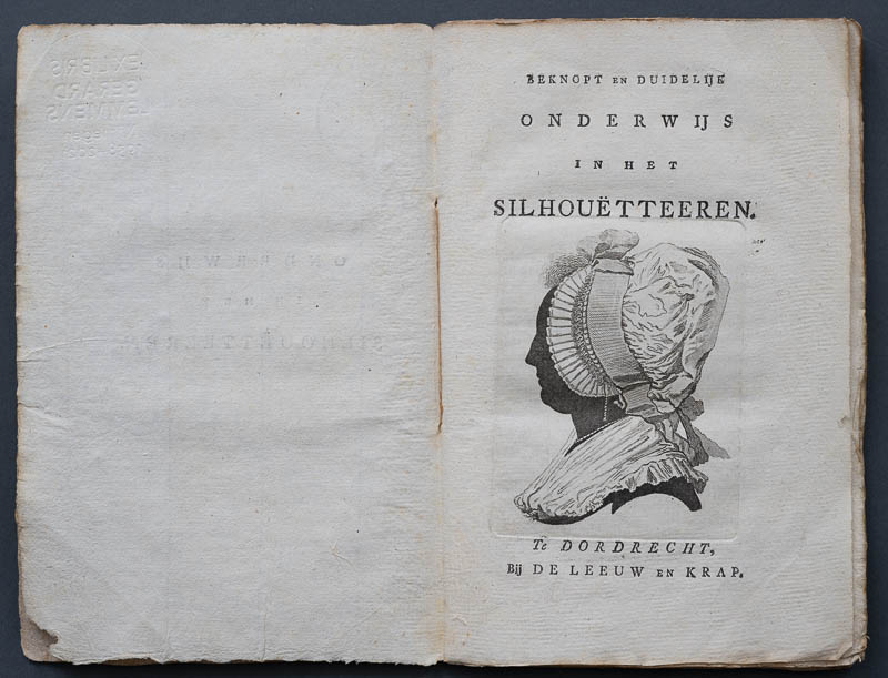 Onderwijs in het Silhouëtteeren - Anleitung zum Anfertigen eines Schattenrisses/Scherenschnitts; Titel mit Radierung einer Frauensilhouette; ohne Autorenangabe: 1792, 52 Seiten.