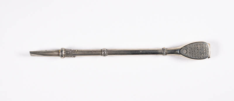 Bombilla, Löffel und Trinkröhrchen für Mate (Südamerikanischer Tee); oberes Ende (aufklappbar) abschraubbar.