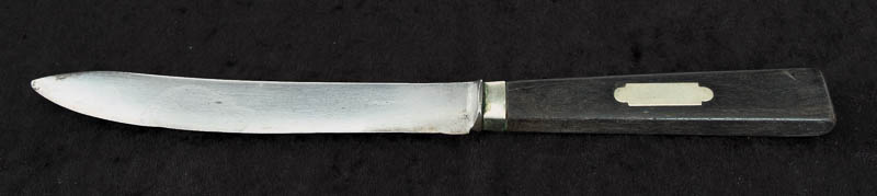 Brotmesser mit Ebenholzgriff mit Silberschildchen 'BK'.