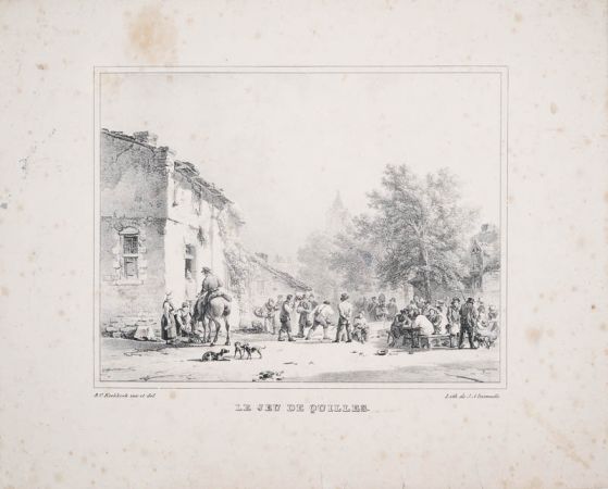 Le jeu de quilles; Das Kegelspiel. Kegler in einem Dorf; aus: Album lithographique de 1830 par B.C. Koekkoek a Amsterdam chez J.A. Daiwaille.