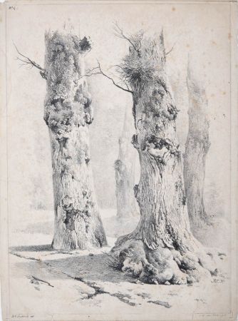 Studie zwei Baumstämme; aus "Baumstudien" Ausgabe Koekkoek / Daiwaille, No. 4 Pl. 45 (Inv.nr. 0901); nach B.C. Koekkoek und von ihm selbst mit Bleistift umrahmt.