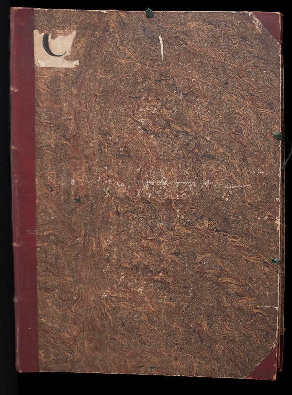 marmorierter Kartoneinband, Lederrücken, leere Papierseiten