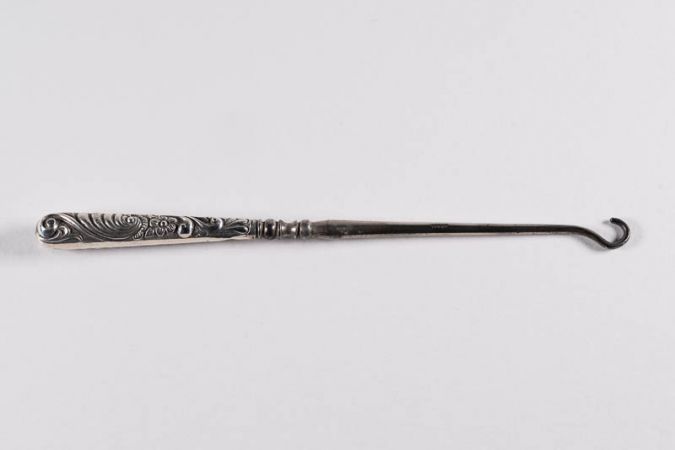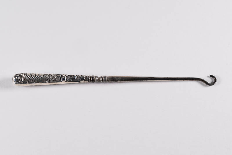 Garniturteil; Knopfhaken mit Griff mit Reliefdekor.