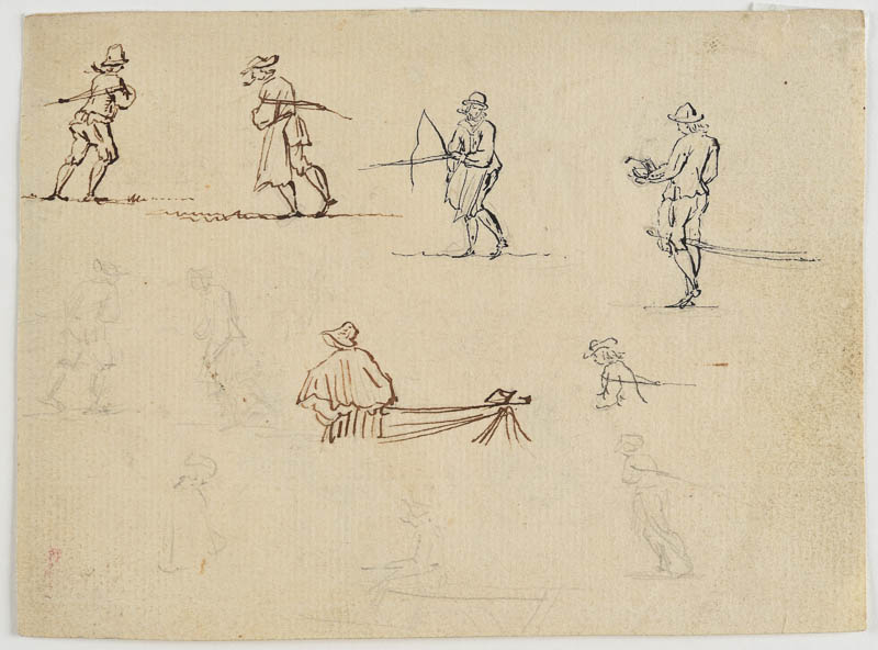 Skizzenbuchblatt: Treckschuten ziehende Männer / Figurenstudien (beidseitig benutztes Blatt).