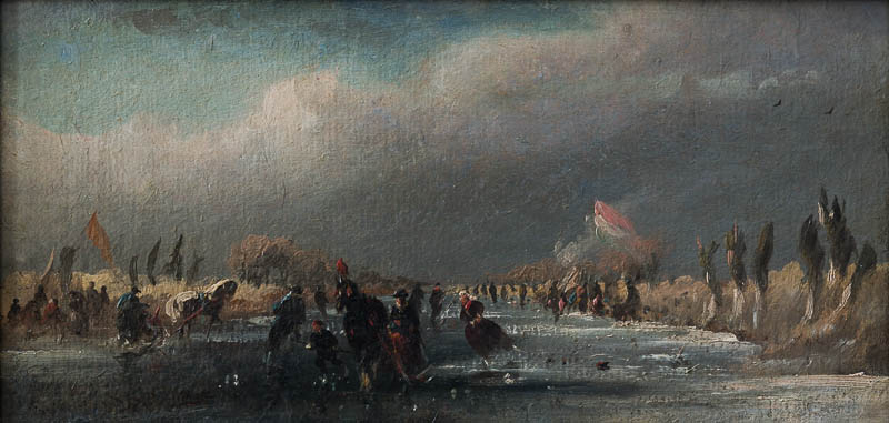Eislandschaft mit Schellenschlitten.