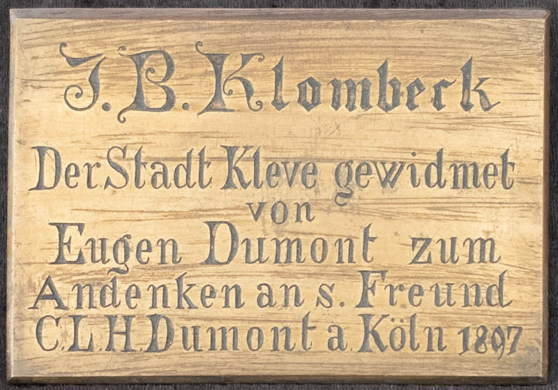 Stiftungsplakette eines Gemäldes von J. B. Klombeck