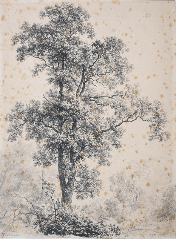Landschaftsstudien: großer Baum; aus "Baumstudien" Ausgabe Koekkoek / Daiwaille 2. Lev. Pl. 43 (Inv.nr. 0899); nach B.C. Koekkoek und von ihm selbst mit Bleistift ergänzt.