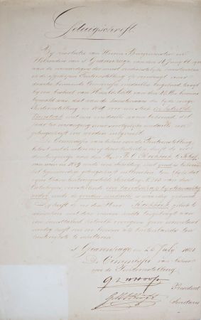 Verleihung der Goldmedaille für das Gemälde "een landschap bij stormachtig weder" - "eine Landschaft bei aufziehendem Wetter", verliehen auf der Ausstellung in Den Haag 26. Juli 1841.