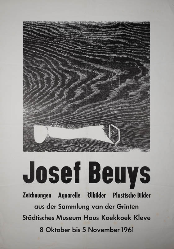 Ausstellungsplakat schwarz/weiß, eigenhändiger Holzschnitt (nicht signiert) Jospeh Beuys; Werke aus der Sammlung van de Grinten in Städtisches Museum Haus Koekkoek.