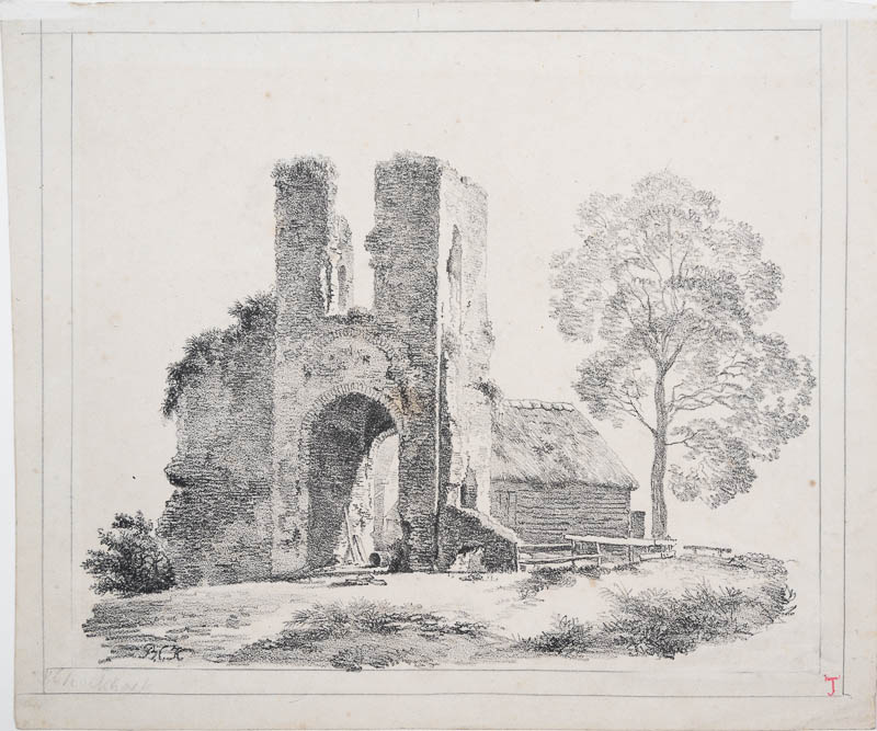 Landschaftsstudien: Ruine von Brederode bei Haarlem; aus "Landschap Studien" Ausgabe Koekkoek / Daiwaille 2. Lev. Pl. 10 (Inv.nr. 0888); nach B.C. Koekkoek und von ihm selbst mit Bleistift umrahmt.