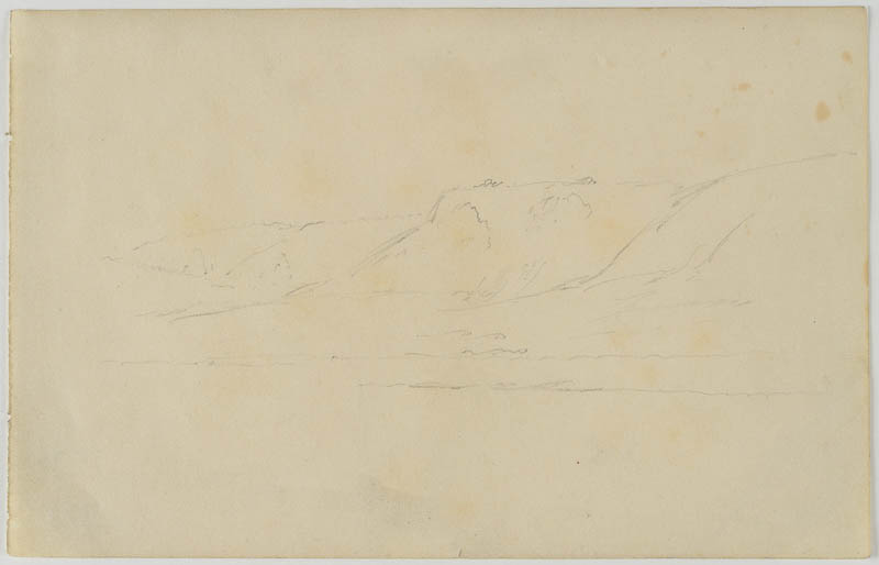 Skizzenbuchblatt: Blick auf einen Gebirgszug.