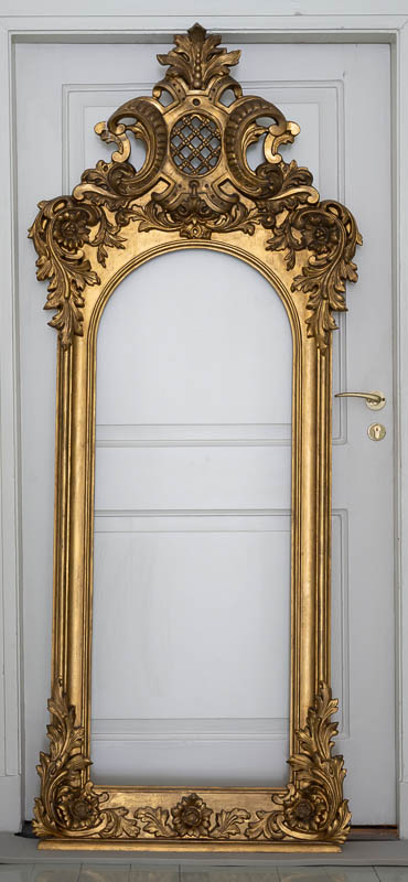 Spiegelrahmen, neobarocke Ornamentik mit Muschelwerk und Blumen, goldfarbener Anstrich; zusammengehörend zu 1284 (L465) und1307 (L616); aus der alten Einrichtung des B.C. Koekkoek-Hauses durch Familie van Ackeren.