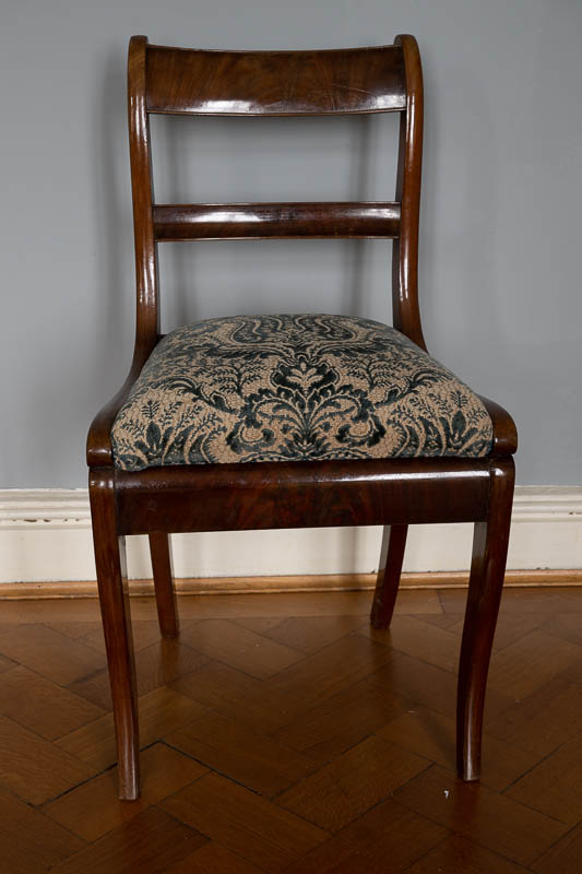 8 Stühle; Teil eines 11-teiligen Wohnzimmermöbel-Ensembles, bestehend aus: 1 Tisch (Inv. Nr. 1333), 8 Stühlen (Inv. Nr. 1334) und 2 Armlehnstühlen (Inv. Nr. 1335).