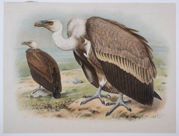 Der Gänsegeier, Gyps vulva (gmelin); Abbildung aus "Ornithologia Neerlandica"; Plaat 88. Herausgeber Daniël van Oort (1876-1933)