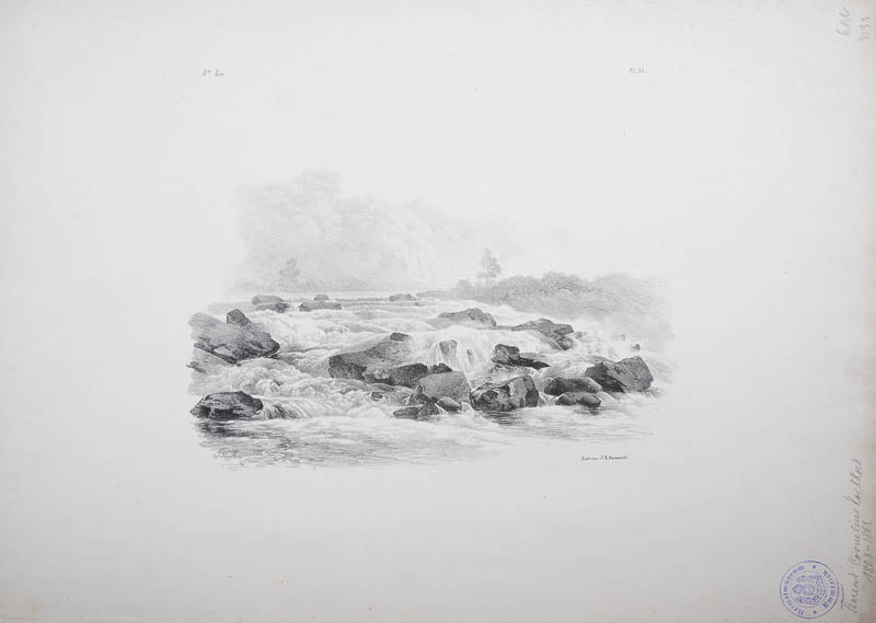 Landschaftsstudien: Stromschnellen; aus "Landschap Studien" Ausgabe Koekkoek/Daiwaille 6. Lev. Pl. 33 (0909); nach B.C. Koekkoek.