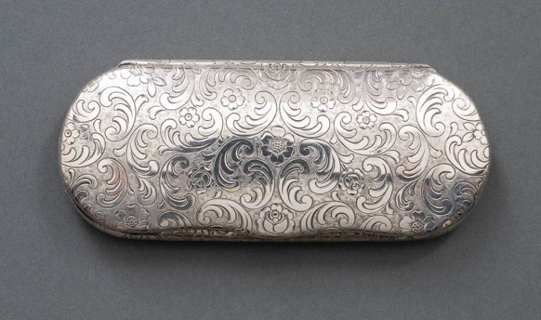 Futteral mit runderhabener oberer und unterer Seite, graviert mit Blumen und Ranken.