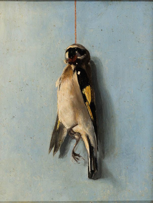 Hängender toter Stieglitz