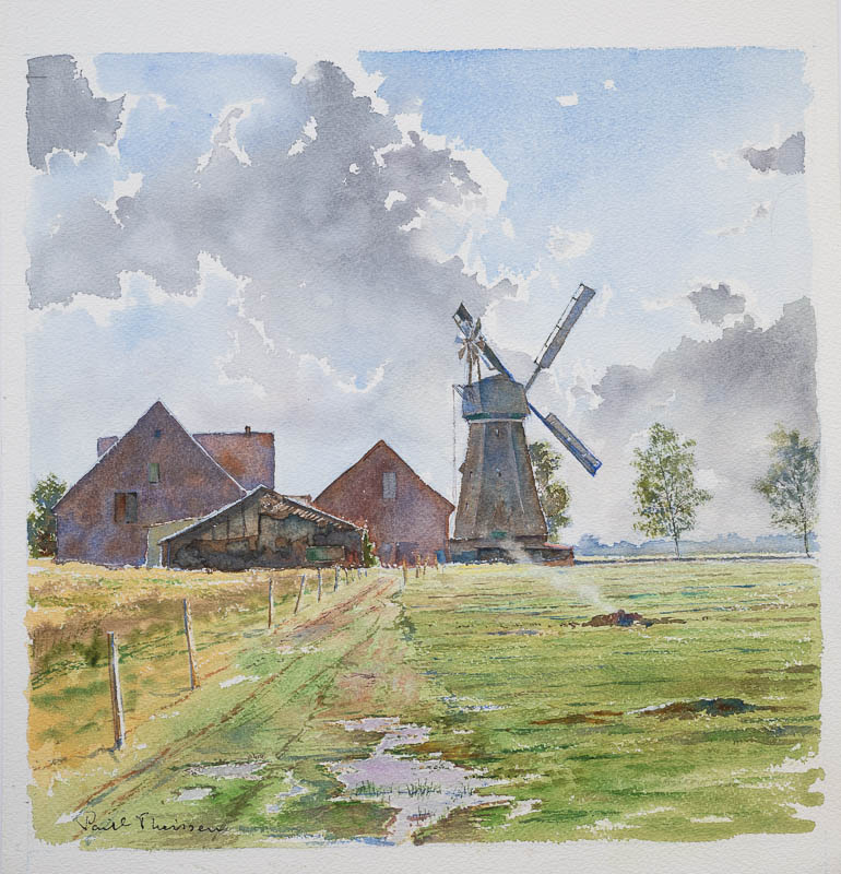 Blick auf die Mühle mit Nebengebäuden in Donsbrüggen bei Kleve.