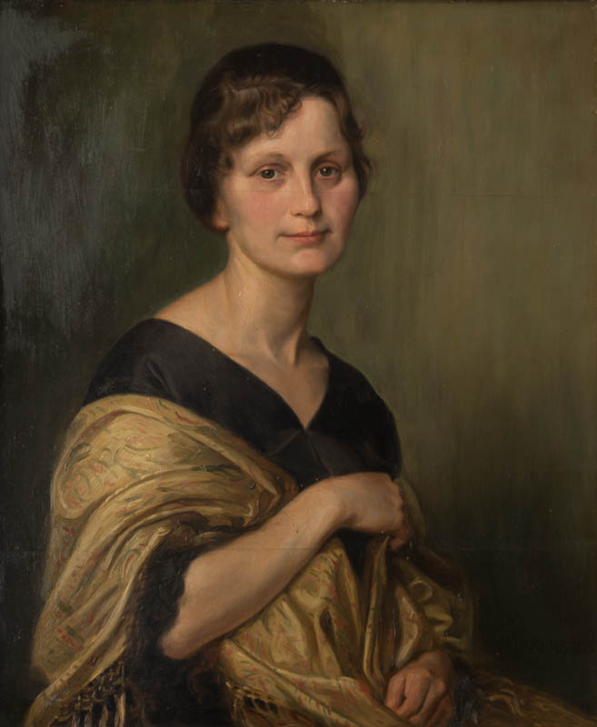 Halbportät im Sitzen einer vornehm gekleideten Frau mit Haarkappe