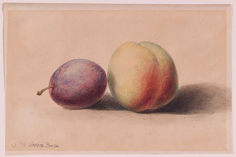Stillleben mit Pfirsich und Pflaume