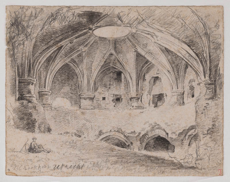 Gewölbe in der Bastion Vredenburg zu Utrecht; im Vordergrund ein sitzender Mann, zeichnend.