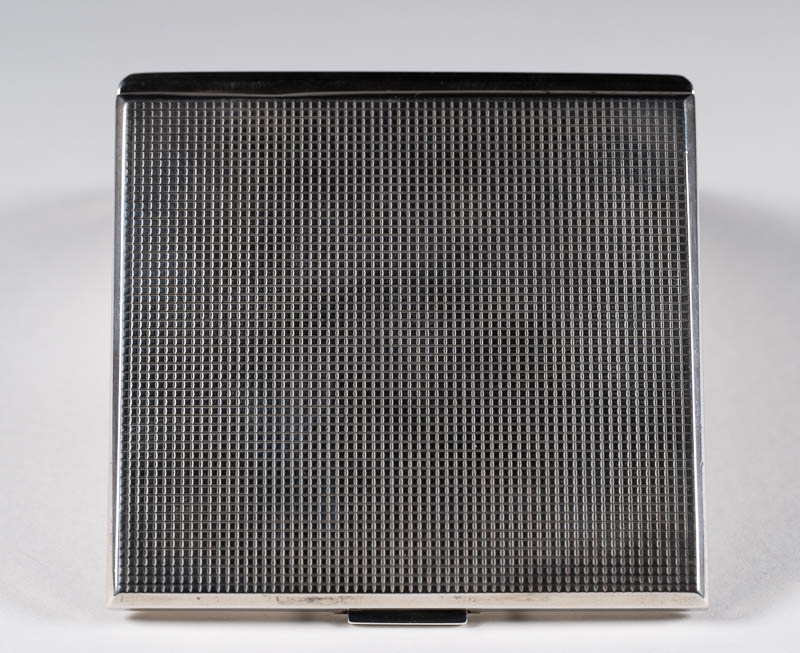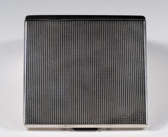 Flache Zigarettendose, Deckel und Boden rautenförmig graviert.